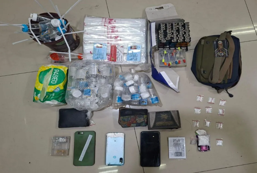 Selain itu, dalam penggeledahan yang dilakukan di lokasi, ditemukan sejumlah barang bukti, termasuk sebelas alat hisap, dua belas cangklong, empat belas korek api yang dimodifikasi, dan sejumlah botol yang digunakan untuk mengonsumsi sabu.