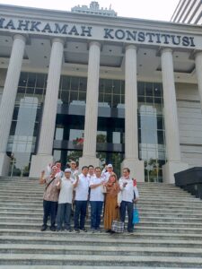 Jakarta , intra62.com . Loyalis Partai Golkar dan Tim Hukum Merah Putih mendatangi Gedung Mahkamah Konstitusi (MK) Jalan Merdeka Barat No. 6 Jakarta, pada hari Jumat siang (13/10/2023). Tim Kuasa Hukum Merah Putih yang terlihat hadir adalah C. Suhadi SH, MH, M Kaunang SH MH, Sutan Siagian SH MH, DR. Moch Edy Gozali SH MH, Sumantap Simorangkir SH MH, Posma SH dan Nurita SH. dan Loyalis Partai Golkar diimpin langsung oleh Lisman Hasibuan sebagai Koordinator. Kedatangan mereka tersebut adalah terkait masalah batas Usia Minimum Bacapres dan Bacawpres yang sedang diajukan oleh sebuah Partai Politik.