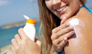 Jika harus keluar rumah, ingatlah untuk selalu menggunakan tabir surya setiap selesai beraktivitas. Ulangi aplikasi seperlunya. Tabir surya penting untuk melindungi tubuh dari sengatan sinar matahari secara langsung.