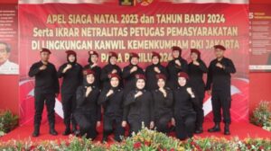 Jakarta, Intra62.com – Guna menjaga kewaspadaan keamanan dan ketertiban pada perayaan Natal 2023 dan Tahun Baru 2024 (Nataru) di lingkungan Unit Pelaksana Teknis (UPT) Pemasyarakatan, Kantor Wilayah Kementerian Hukum dan Hak Asasi Manusia (Kemenkumham) DKI di Jakarta menyelenggarakan Apel siaga serentak.