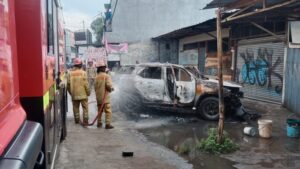 Eko menerangkan, api yang menyala di luar mobil berwarna hitam itu sudah padam, namun api kembali karena diduga ada bahan bakar yang terangkut di dalam mobil.
