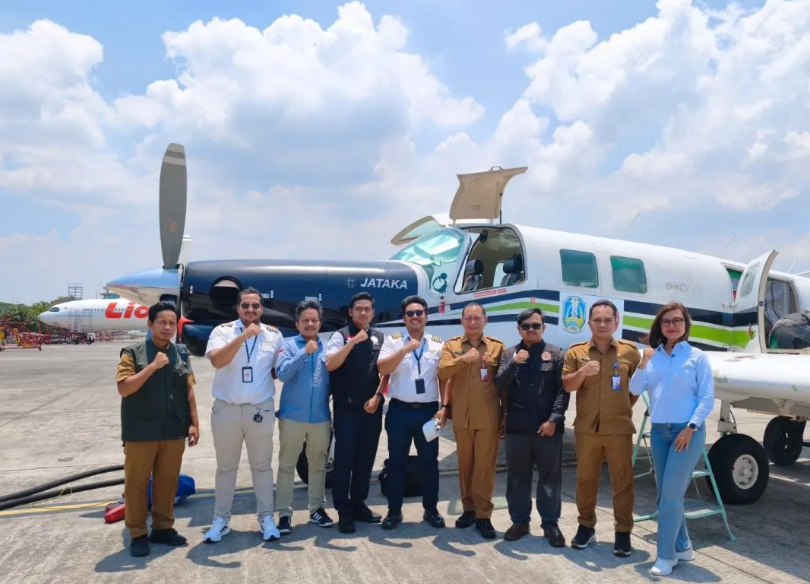 Penerbangan pertama ini melakukan penyemaian awan di wilayah Situbondo dan utara Banyuwangi.