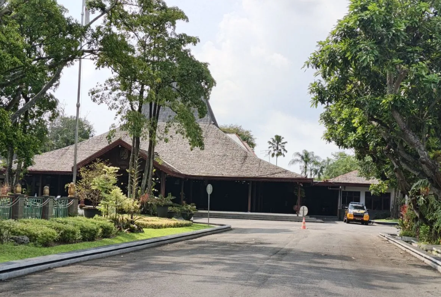 Hanya tim keamanan pendopo yang melindungi pintu gerbang, sehingga wartawan tidak dapat melihat ke dalam.