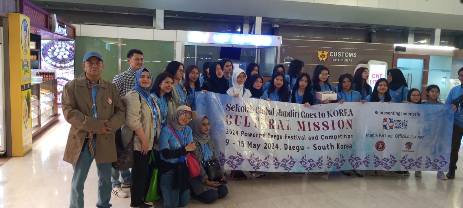 Jakarta ,Intra62.com . Sekolah Global Mandiri Berangkat ke Festival Budaya di Daegu Korea bersama CoI dan AWDI . Keberangkatan mereka para murid Sekolah Gobal mandiri dipantau redaksi intra62 di Bandara soetta ,kamis malam ( 10/5/24 ).